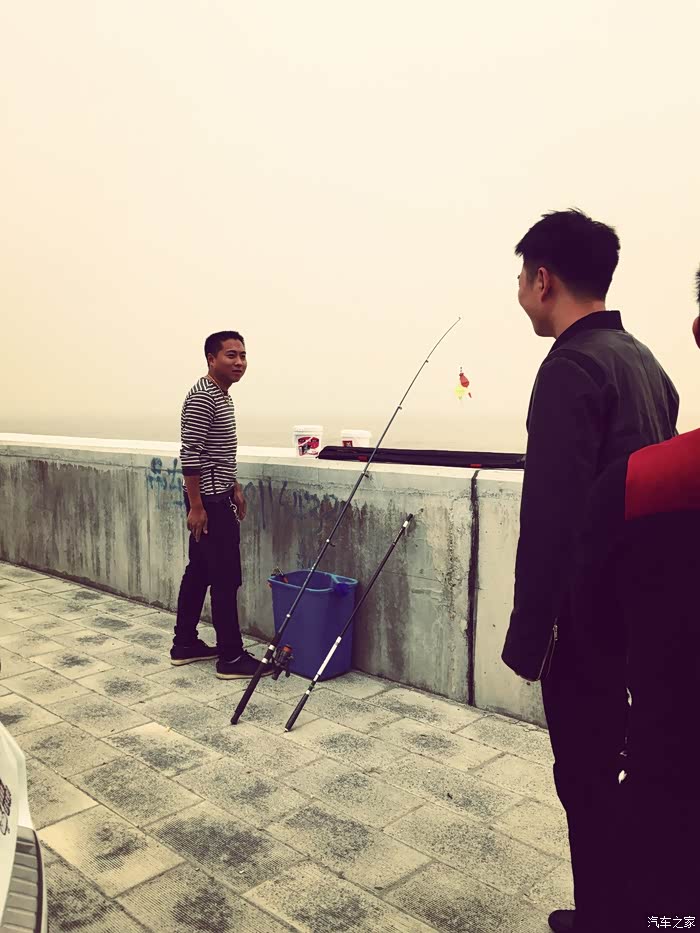到了江边,今天风大无车,在空地井然有序默契的开始排队...