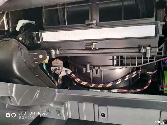 旧的空调滤芯露出来了。长安车内部布局还是挺规矩的。