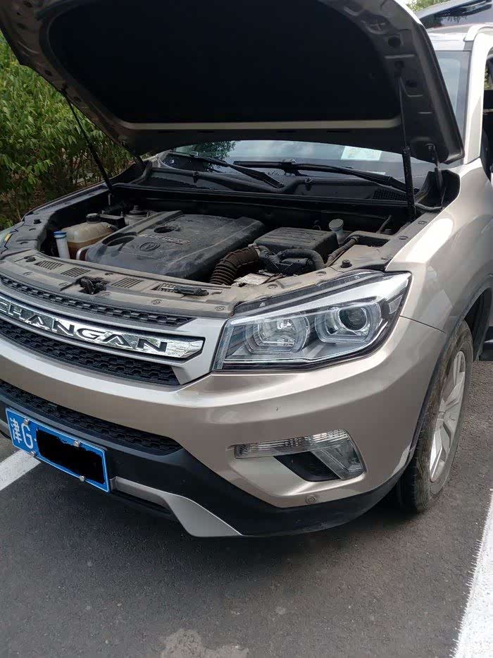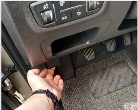 打开机舱盖准备干活了。主驾驶位方向盘下面这个方块往上拉就把机舱盖打开了,应该开车的人都知道吧。
