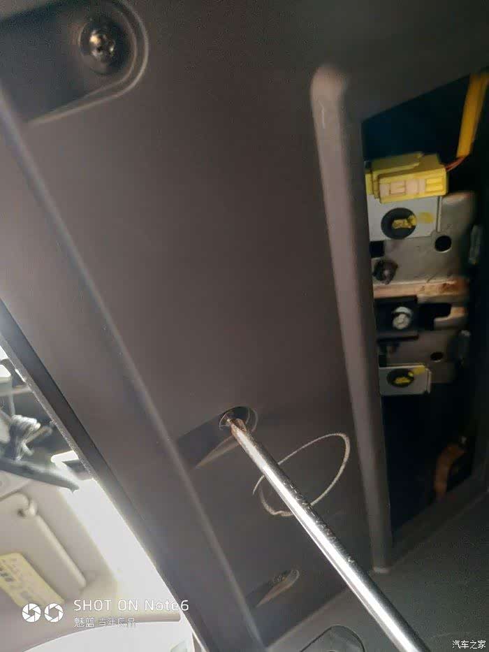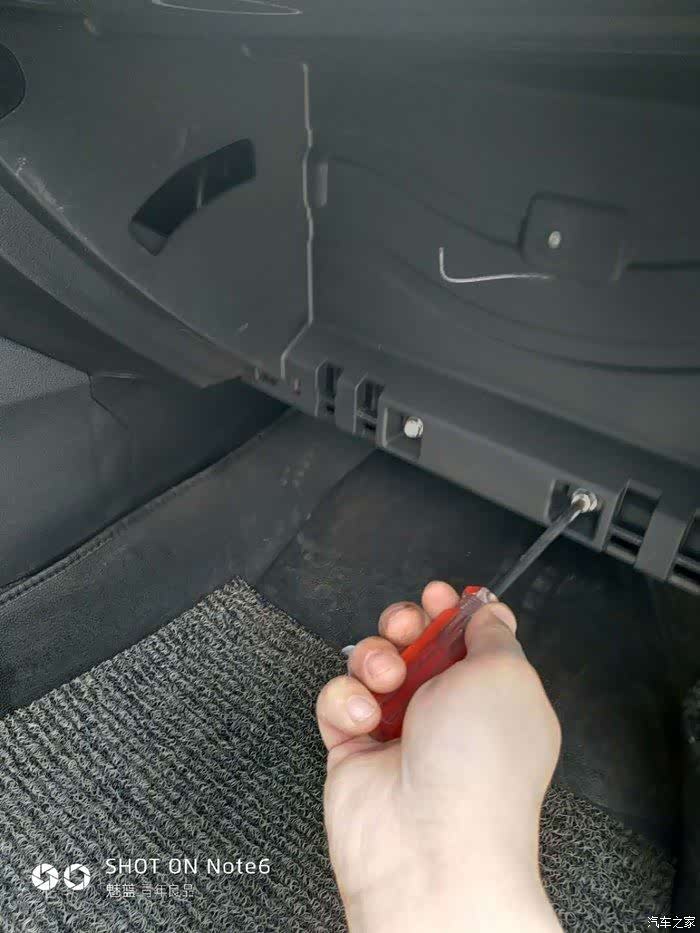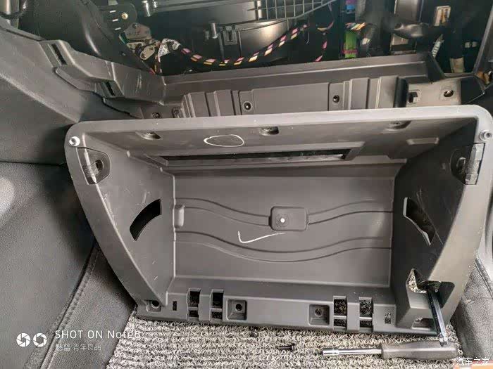 现要拆掉手套箱的两个圆“耳朵”。