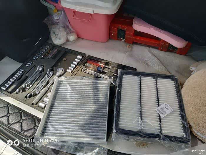 工具和新的空滤、空调滤芯放车里很久了。
