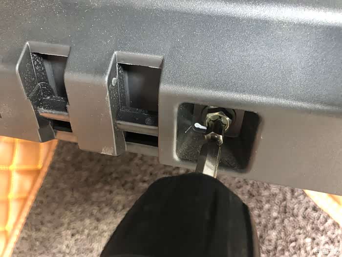 对准后阻尼杆先不要安装上去,推到里面试着关一下手套箱看下是不受全部到位了才能安上阻尼杆!