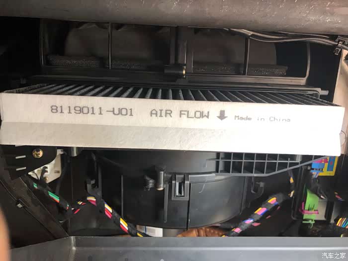 反面也就是说鼓风机上面还很干净,跟新的也差不多说明空调滤芯质量确实不错!