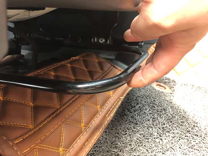 首先第一步我个人原因需要把副驾的座椅调节到最后,很简单调节杆往上一扳轻轻将作为往后推就可以了!