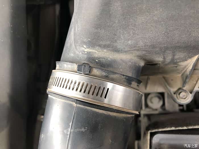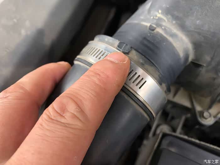 首先先用一字的螺丝刀把进气管抱箍松掉,然后稍稍用力拔出进气管。