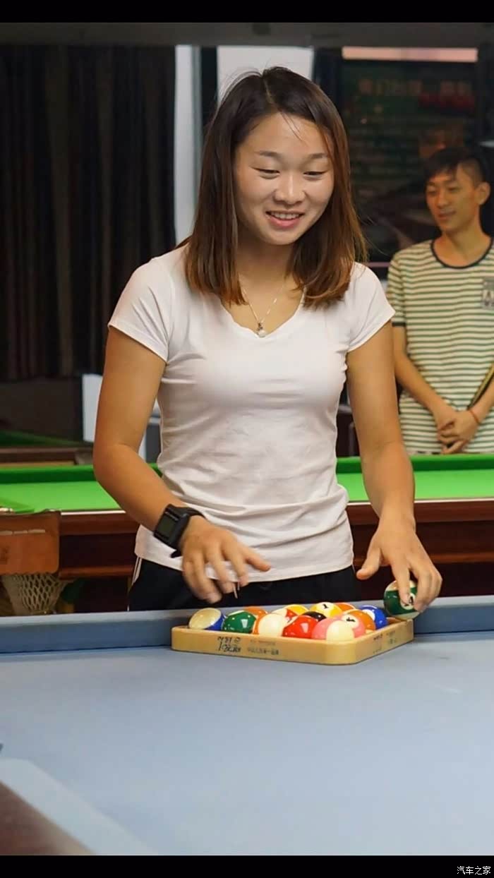 摆球小妹很认真,颜值也是不错的。