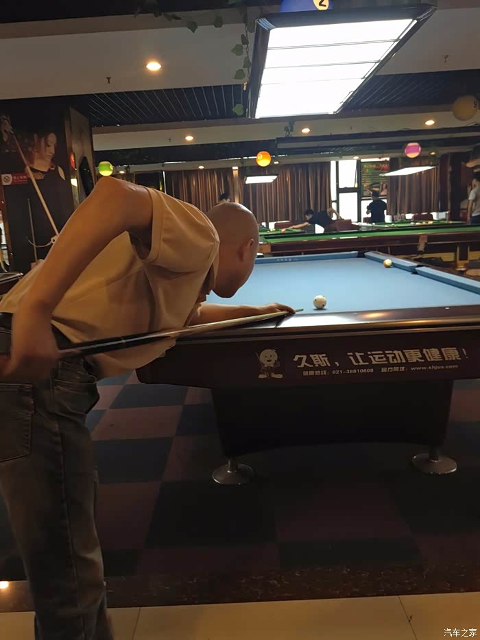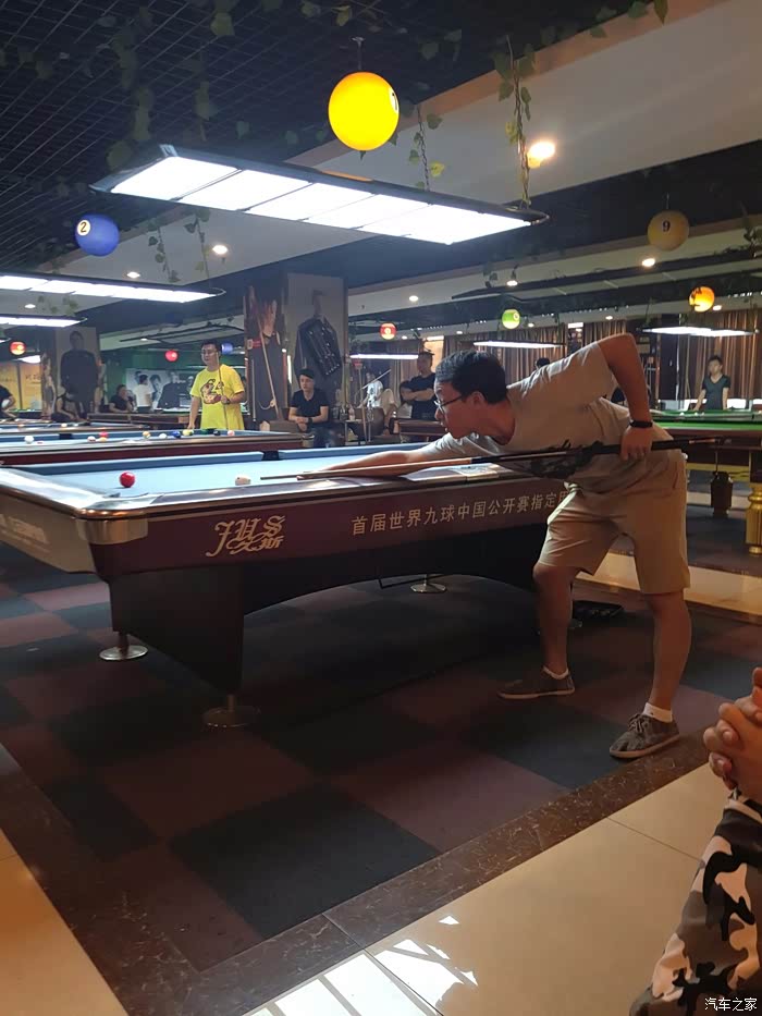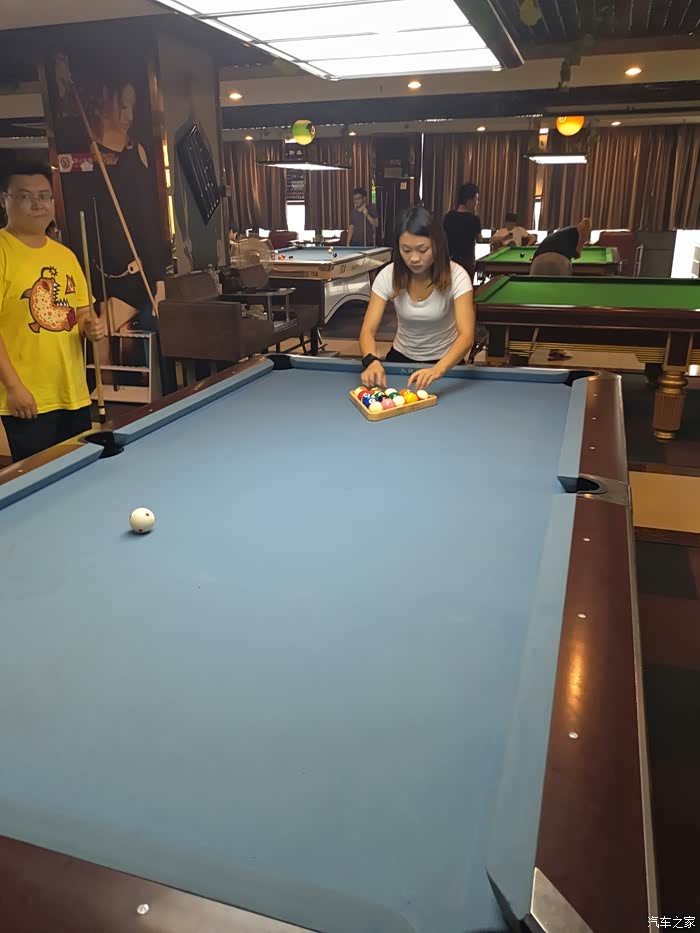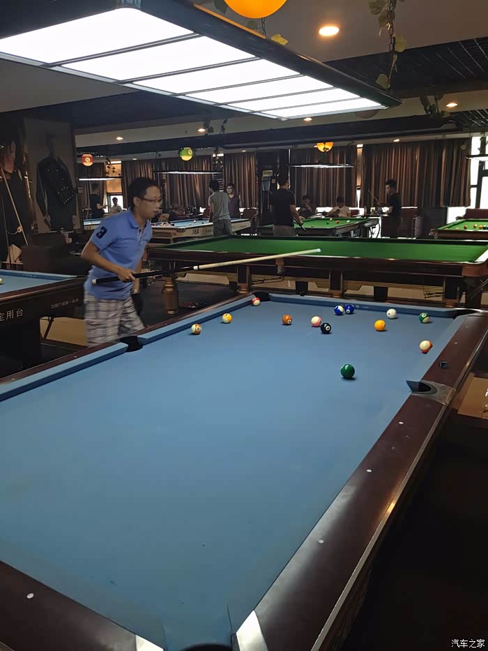 摆好球准备开杆,魔都车友会的兄弟们总共包了4个桌子,同时开赛。