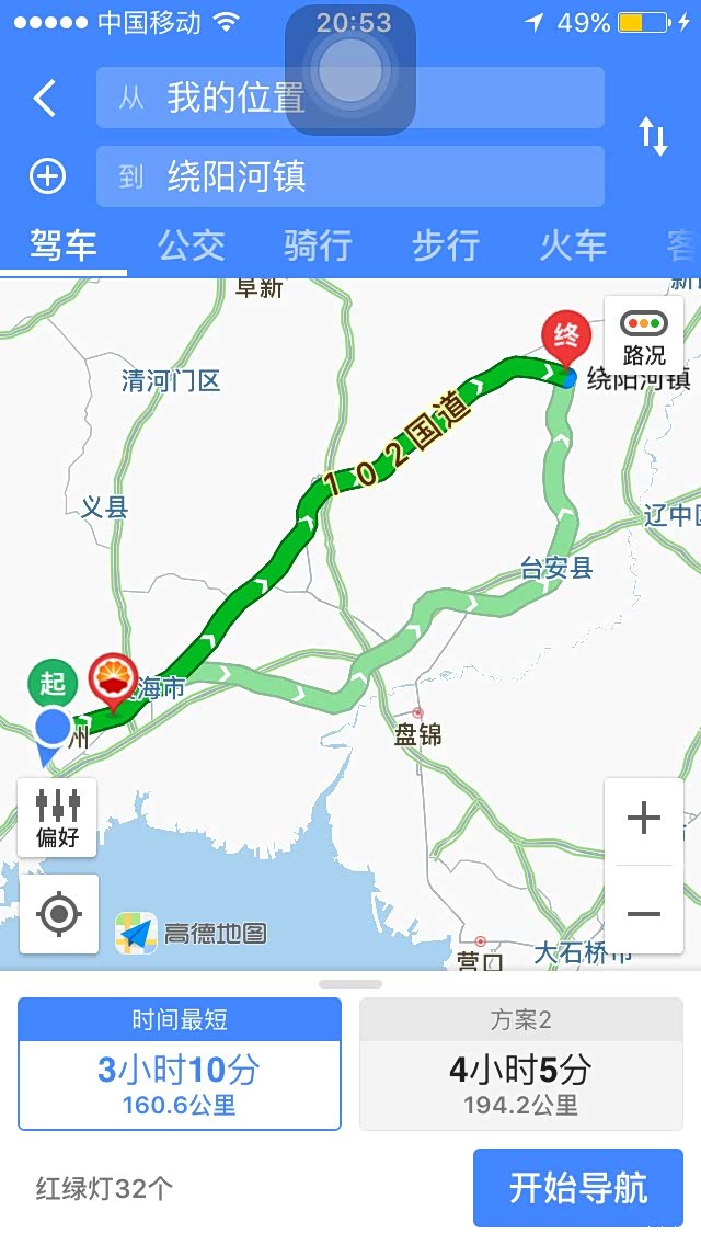提前找好目的地,导航看看线路,天亮准备出发。两条线路,高速和102国道。最终选择102国道。本人不太愿意上高速,在高速上开车个人认为没意思,还是喜欢走国道这种,比较有乐趣,欣赏下沿途的景色,也能体验到开车的乐趣。
