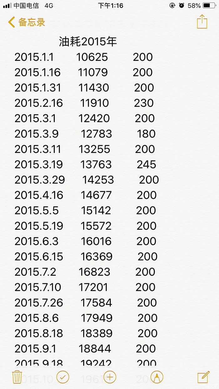 k3的油耗记录,从里面可以看出,基本也是一个月加两次油,每次200元左右,一个月400到450元的样子。
