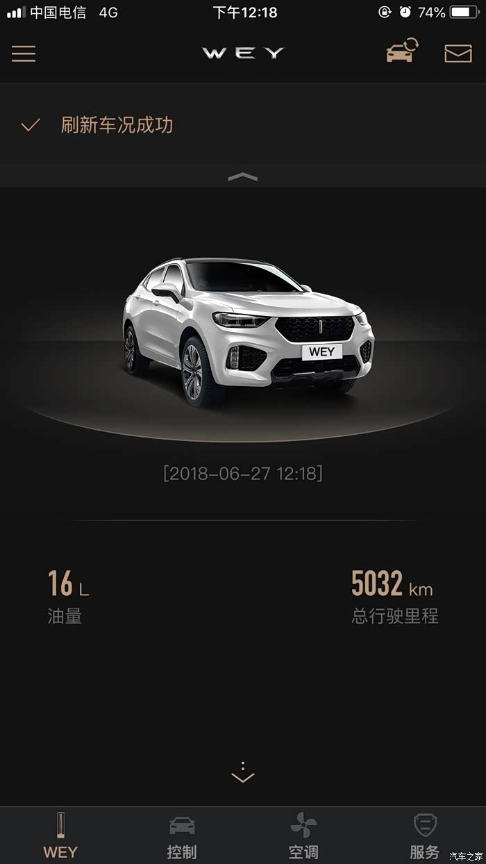 目前行程5032公里,剩余16升油。