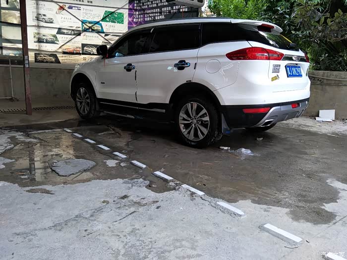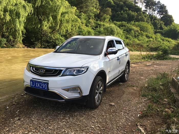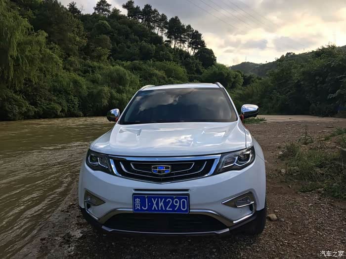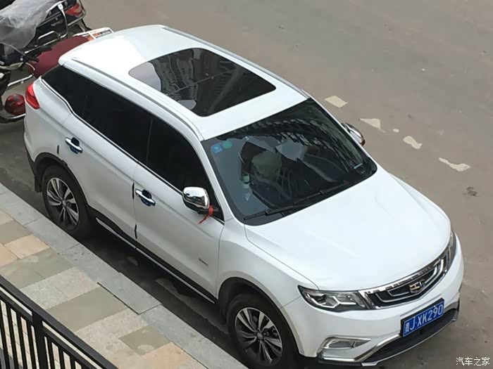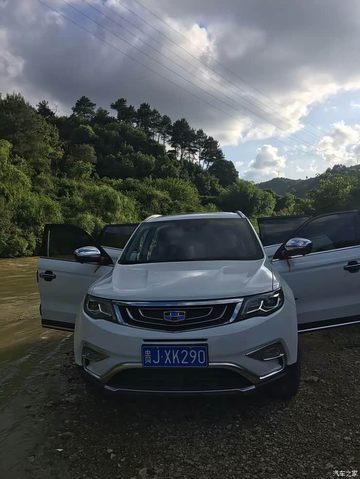 首先我还是想在谈谈为什么会选择博越,在买车之前本人绝对是小白一个,对于车的认识就知道宝马、奔驰、兰博基尼、法拉利等车且认识这些车的车标,只从打算买车后天天有事没事逛逛汽车之家,慢慢对车有了少许的了解,但是你要问我参数之内的东西那还是一窍不通,去年五一的时候贵阳搞了个车展,当时一个朋友准备买车喊我去看看,闲来无事就去了,在车上的时候朋友说新出了款车叫博越据说不错,于是我们也就打算去了解一下,一到会展城,进门的地方刚好就是吉利的展台,于是我们便直奔博越而去,首先映入眼帘的当然是越越硬朗霸气的外形,尤其喜欢悬浮车顶,走近一看水涟漪中网、玉如意雾灯、鹰眼远近一体LED大灯等更是让我耳目一新,打开车门,高大上的中控瞬间便吸引了我,那个灵感来源于西湖断桥的中控台、全液晶仪表盘、带人机交互系统的中控屏、中央扶手、档杆和全景天窗等等简直让我欲罢不能,于是心中按下决心等我买车一定就买博越了,由于去年要装修房子所以只能让越越先等我了,今年过完年回来由于更深切的感受到了没有车的不便之处,于是将越越带回家的愿望更加强烈,于是便跑去交了定金加入等车大军,有句话叫运气来了山都挡不住,在等车10来天以后销售打电话说有车了,在经历各种不易后终于如愿将越越娶回家了。