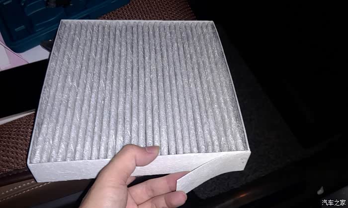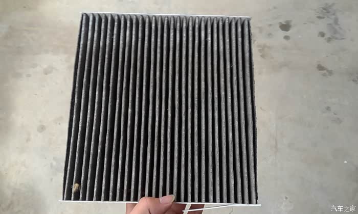拆下的旧滤芯,有些灰尘和毛絮,倒也还不算特别脏