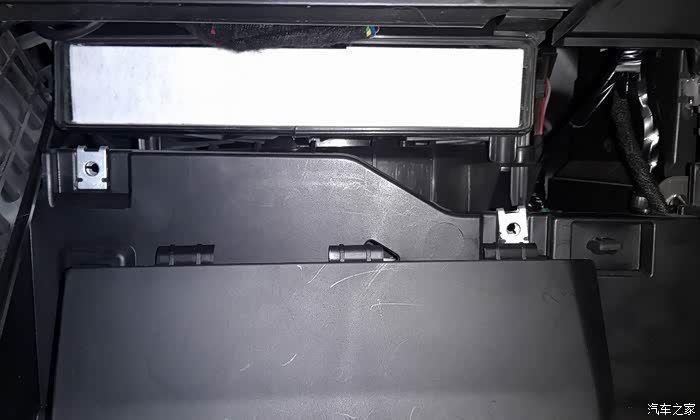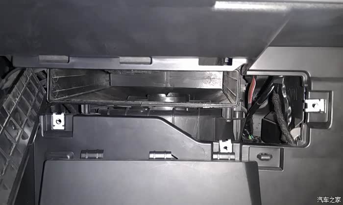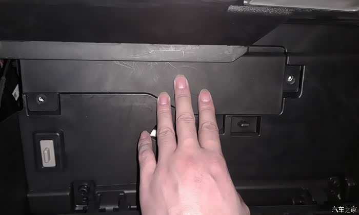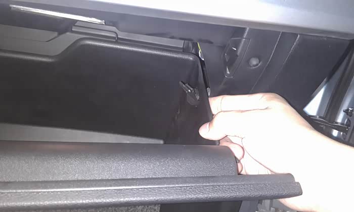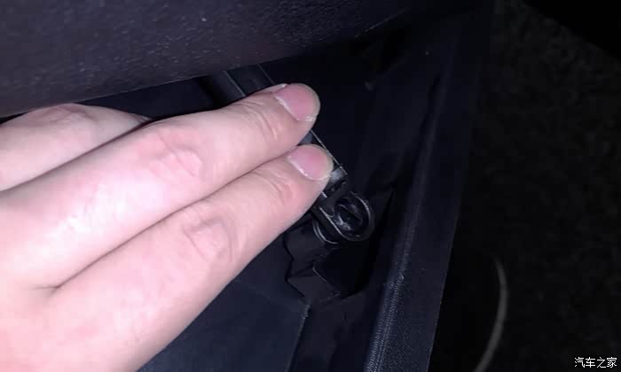 手套箱左右两边各有一个卡扣,右边的卡扣
