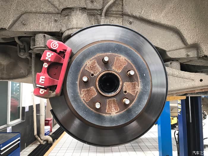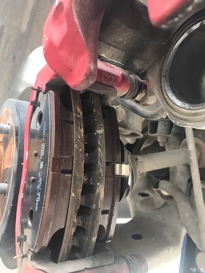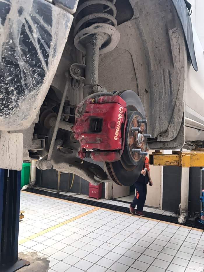 回来时卡钳分泵已经更换好了还有刹车片也换新的了,但是没有红色,回去得自己动手喷漆了