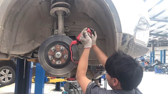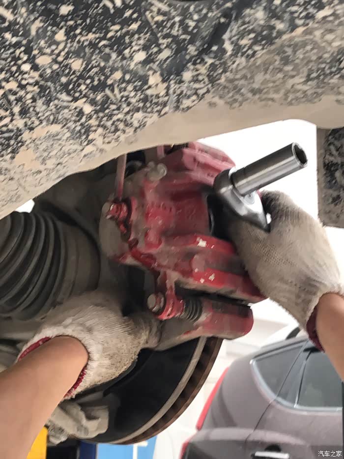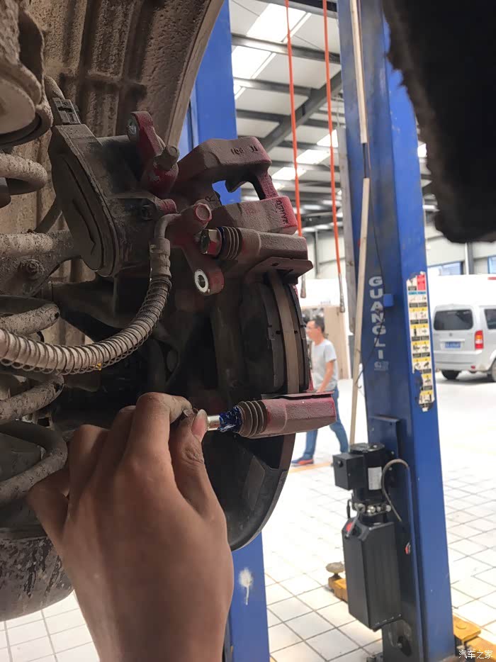 小师傅帮我把卡钳螺栓上润滑油保养