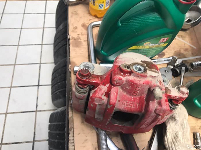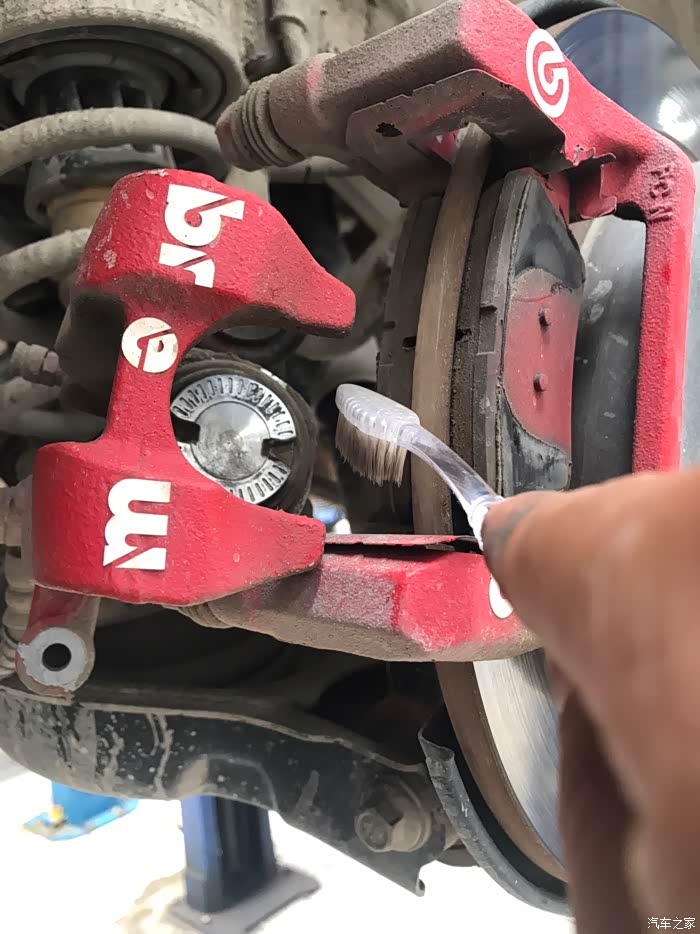 等待材料的到来更换,我自己找了一把牙刷把其他三个刹车分泵卡钳灰尘清除干净。