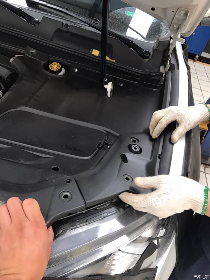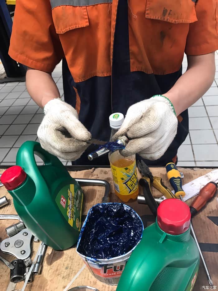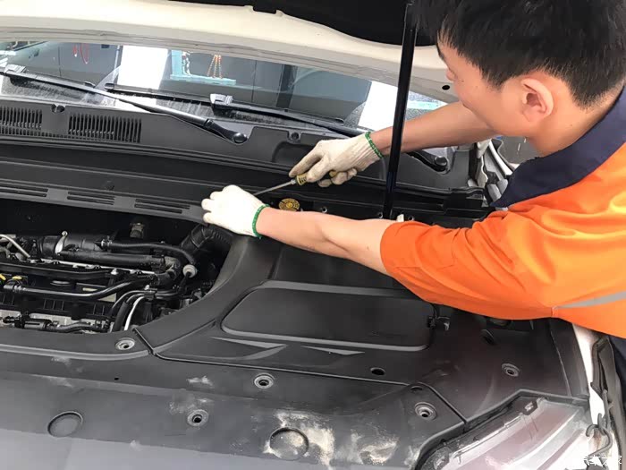 我去洗手间回来,两位小师傅已经做了灯光检查项目。作为爱车之人每次保养,我都在车间看技师保养,好处是可以自己仔细检查车况。
