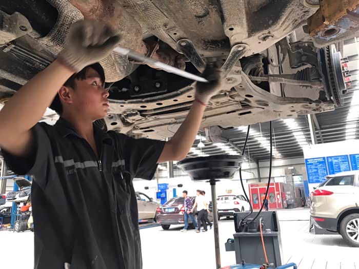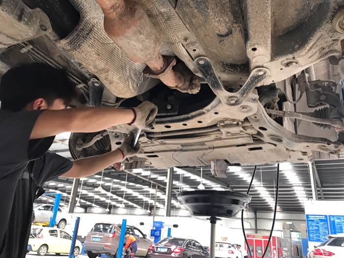 小师傅很负责的为我检查底盘螺丝