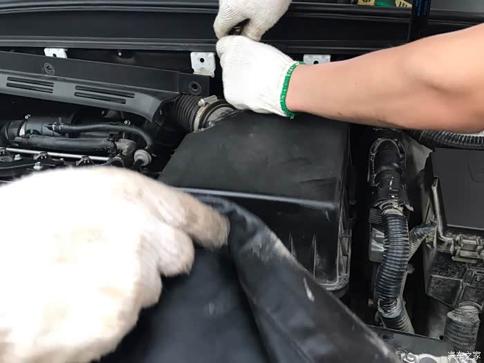 打开机舱拆开电瓶这面的护板,更换空气滤清器