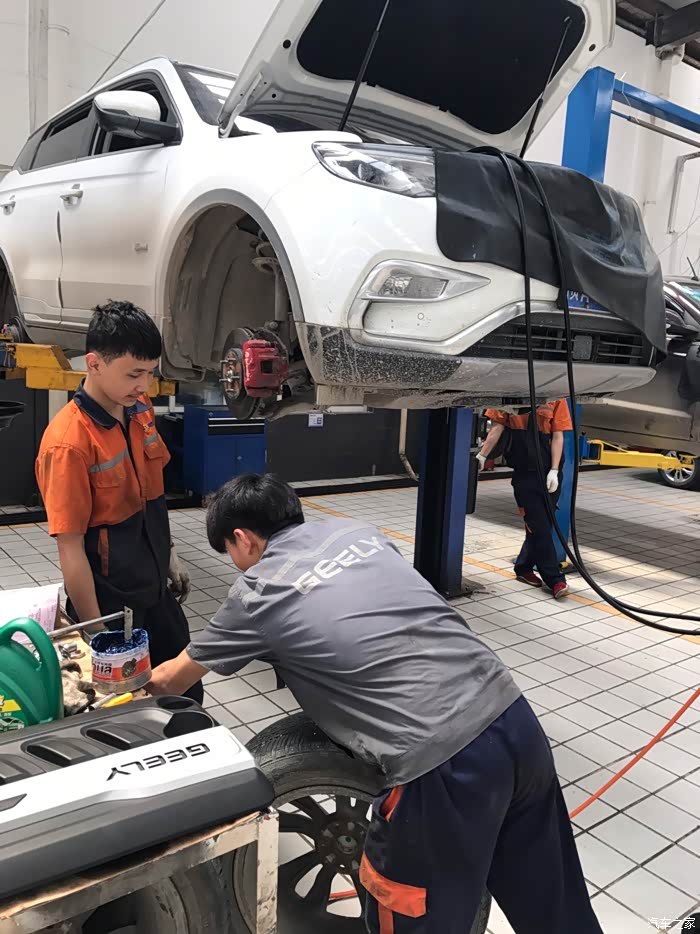 这次保养过程很满意,保养维修师傅都很负责,从检查底盘 刹车系统,到换件都很给力,大家也不必为更换配件介意担心,机械的东西该换就换,行车安全最重要,合资车也会有问题滴!不要介意!期待吉利以后做的更好,更完美(完)!