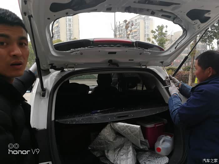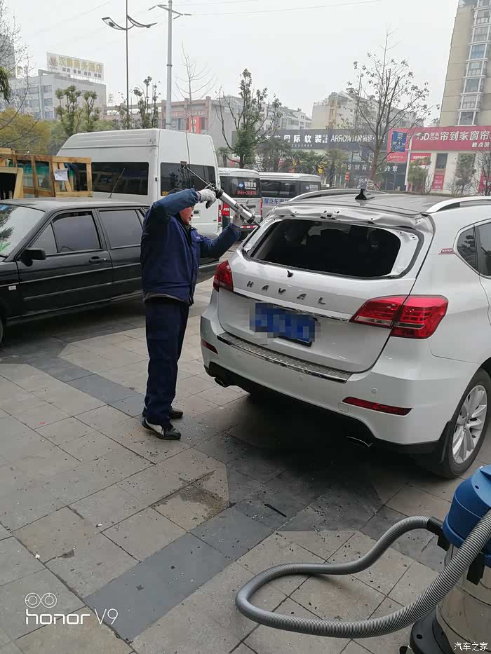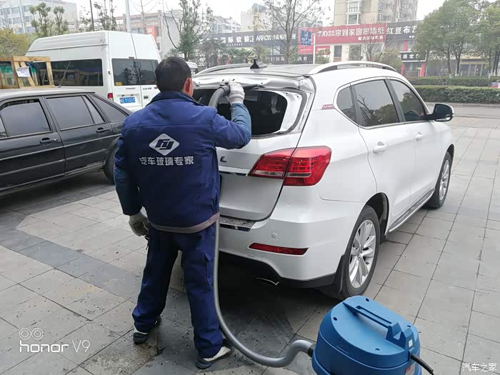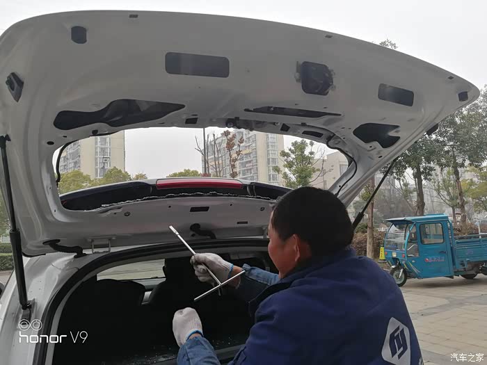 一切都拆结束后,老师傅用吸尘器吸碎的玻璃!同时还不忘了把尾门里的玻璃渣晃出来,一起吸走!给老师傅点个赞