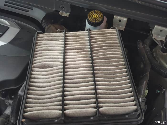 下面是空气滤芯,在驾驶员的正前方,发动机的左侧,人站在车头前面向车头是右手方向,其实就需要把左边的侧一块面护板的卡扣全部打开即可,哇好久没清理了,得一会好好擦擦