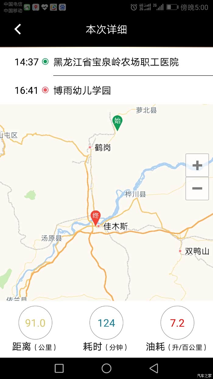 游完植物园下午三点多开始返航,回去时选择了鹤岗市里的线路,这样来去近二百公里,除了一段乡路没开acc,其余一百多公里都是自适应巡航行驶。