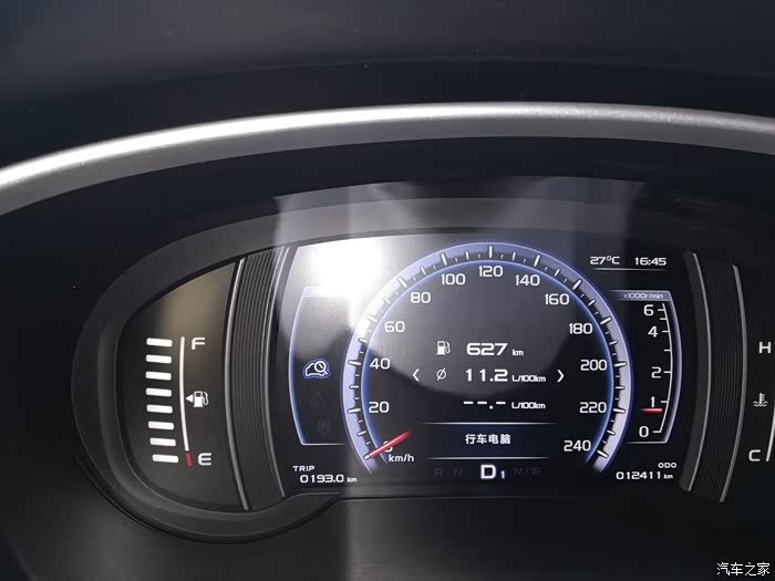 油耗显示:百公里11.2 升,早上是加油时百公里是12.2升,降了一个油。