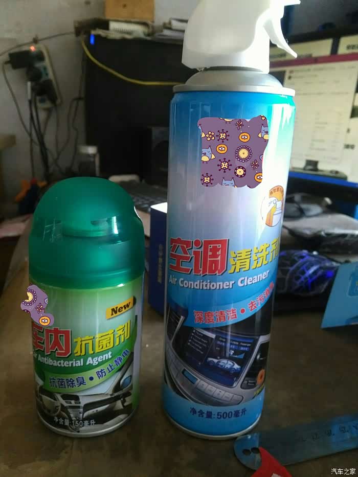 在某宝买的,一瓶清洗空调管道,一瓶杀菌防霉的(怕有做广告的嫌疑,品牌标志打了马赛克)