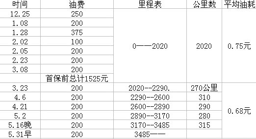 下面附上提车至今油费及跑的公里数,欣喜!