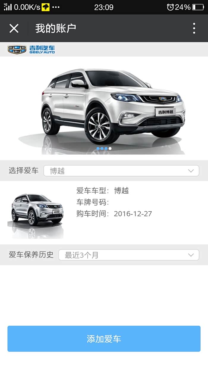 提车之后,四S店会把你的提车资料上传吉利公司,我是12.25提车,四S给我上传提车资料是12.27,此资料在吉行天下俱乐部上注册输入自己的车架号,电话号码,名字就能查到的哈!提车之后会接到吉利客服电话