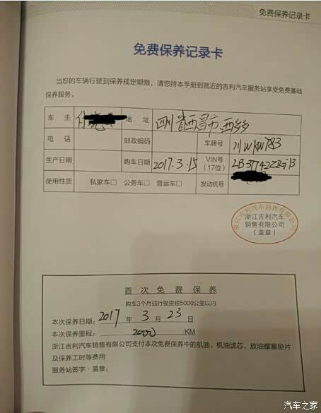 首保记录,12.25提车,17.3.15上的户,17.3.23首保才跑了2000公里!