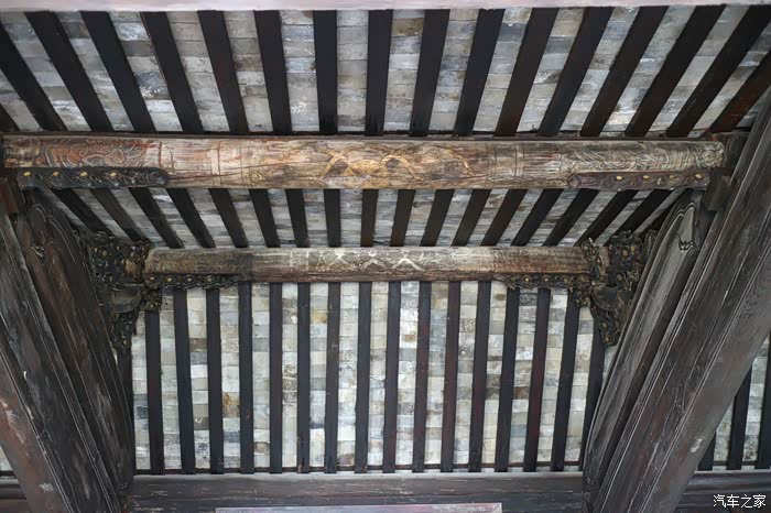 楠木大梁, 还有蝙蝠和牡丹图案, 不过随着时间的流逝, 已经淡了。