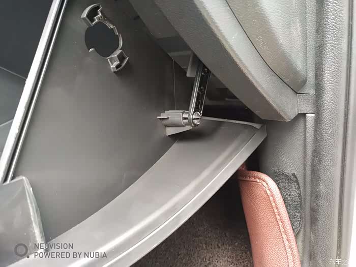 这里是唯一一处勾住手套箱的地方。拆掉之后手套箱便可以拿下来。