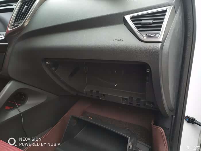 手套箱拆除后露出了里面的内衬板。
