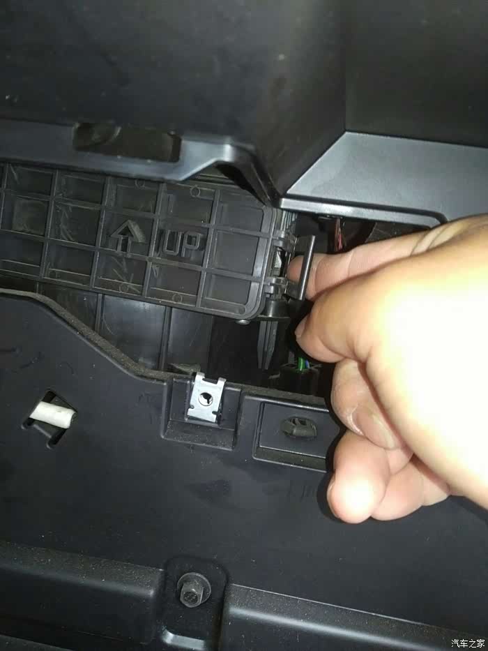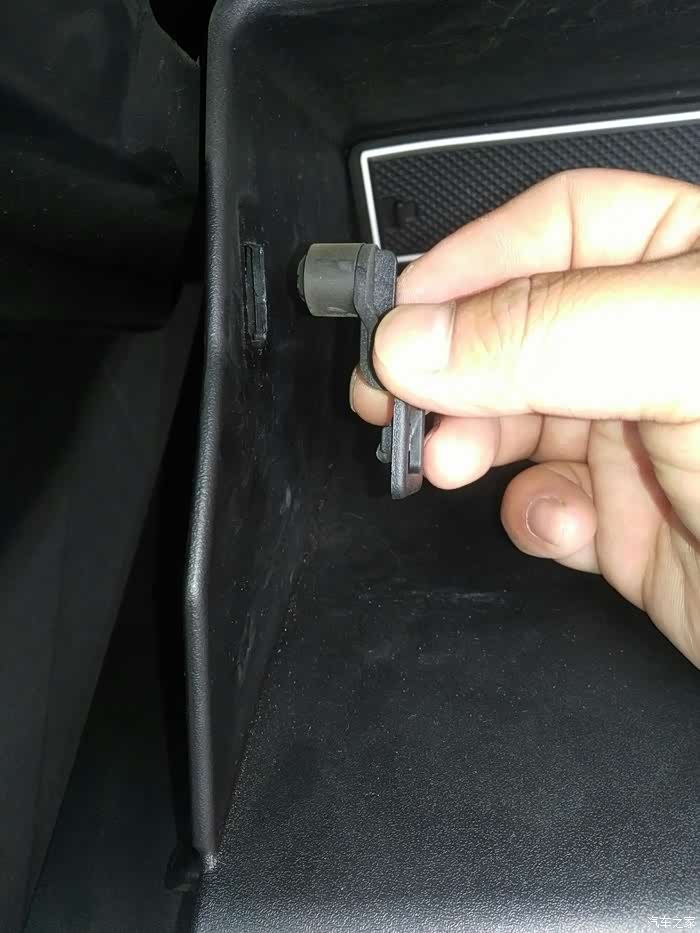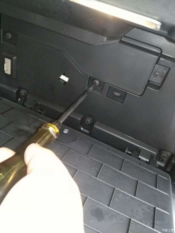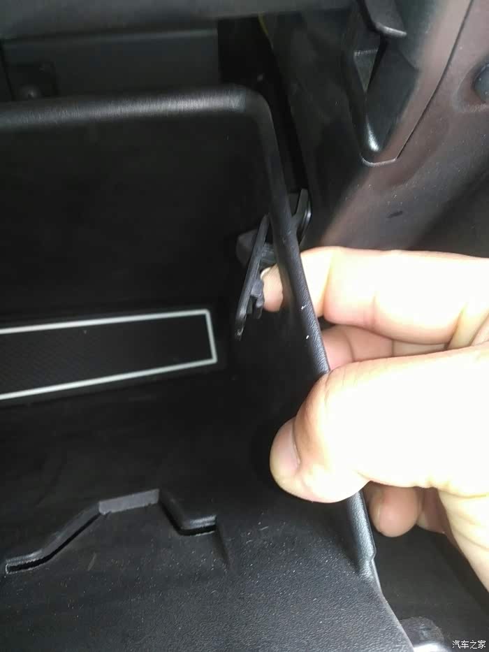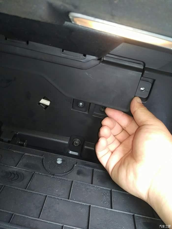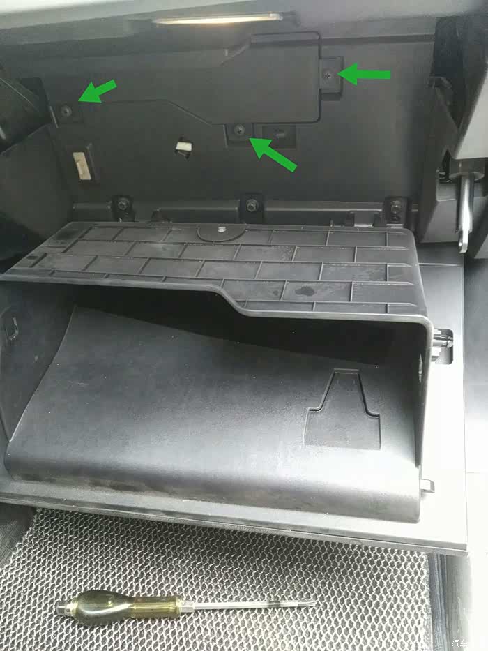 手套箱向下倾斜,就把后面露出来了,下边要拆掉那三颗螺丝