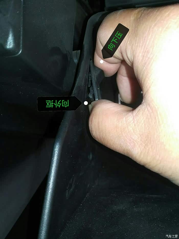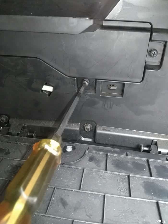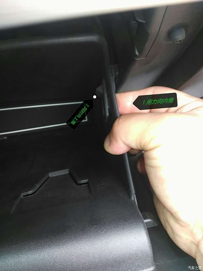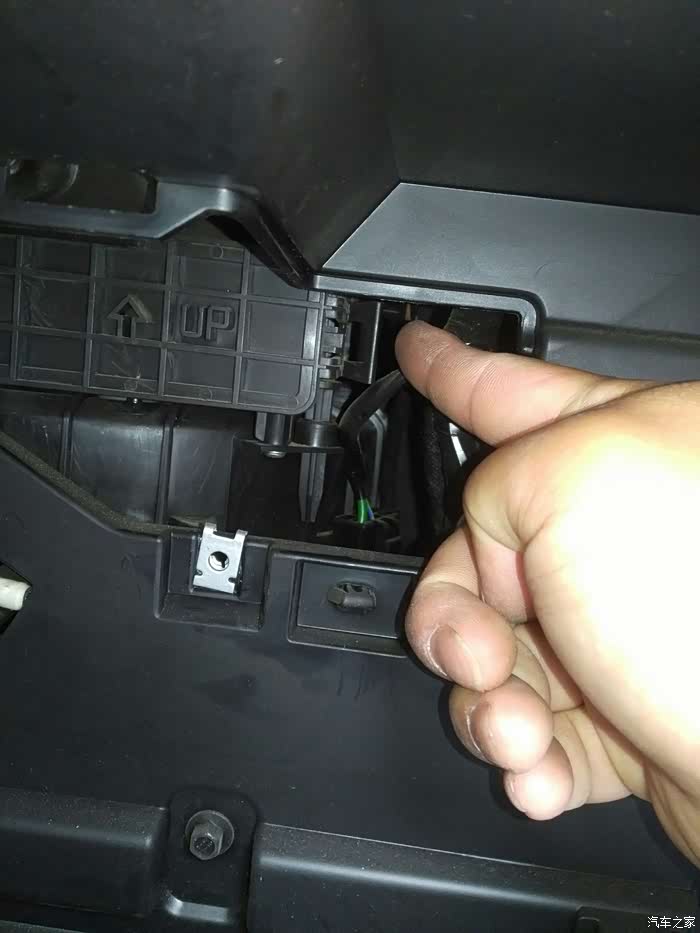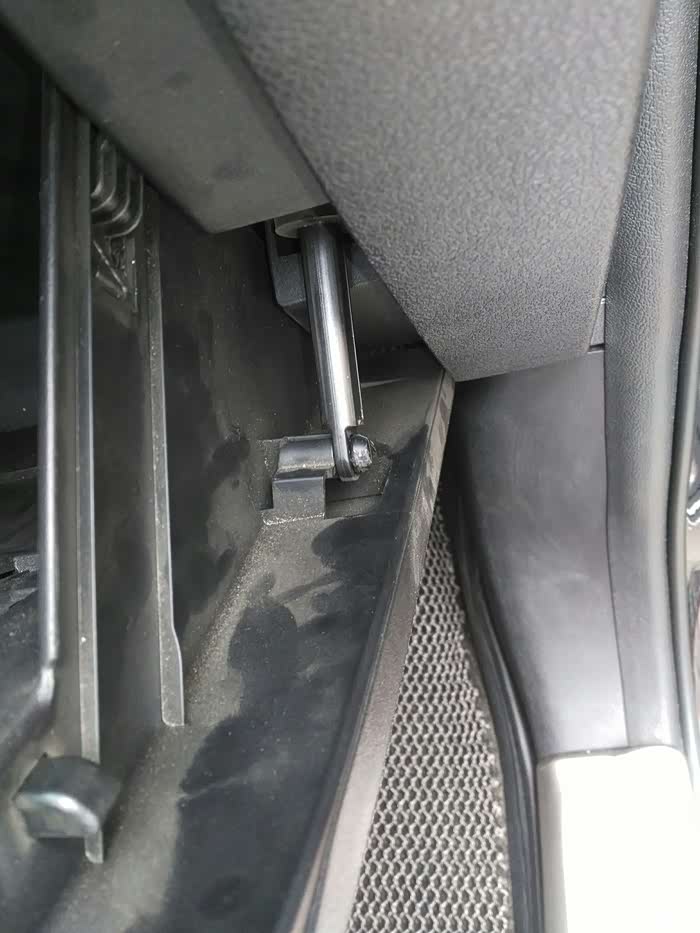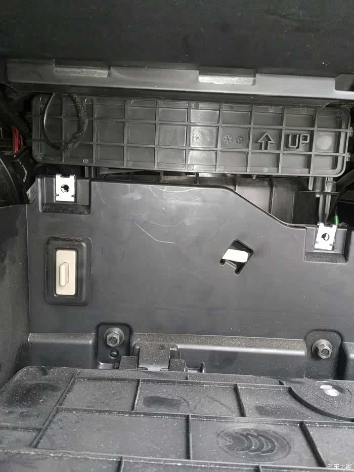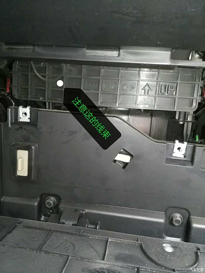 手套箱向下倾斜,就把后面露出来了,下边要拆掉那三颗螺丝