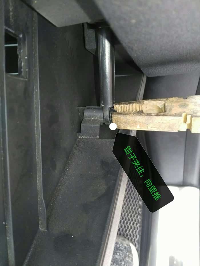 钳子夹住以后向里推,左手向右推缓冲杆,就摘掉了