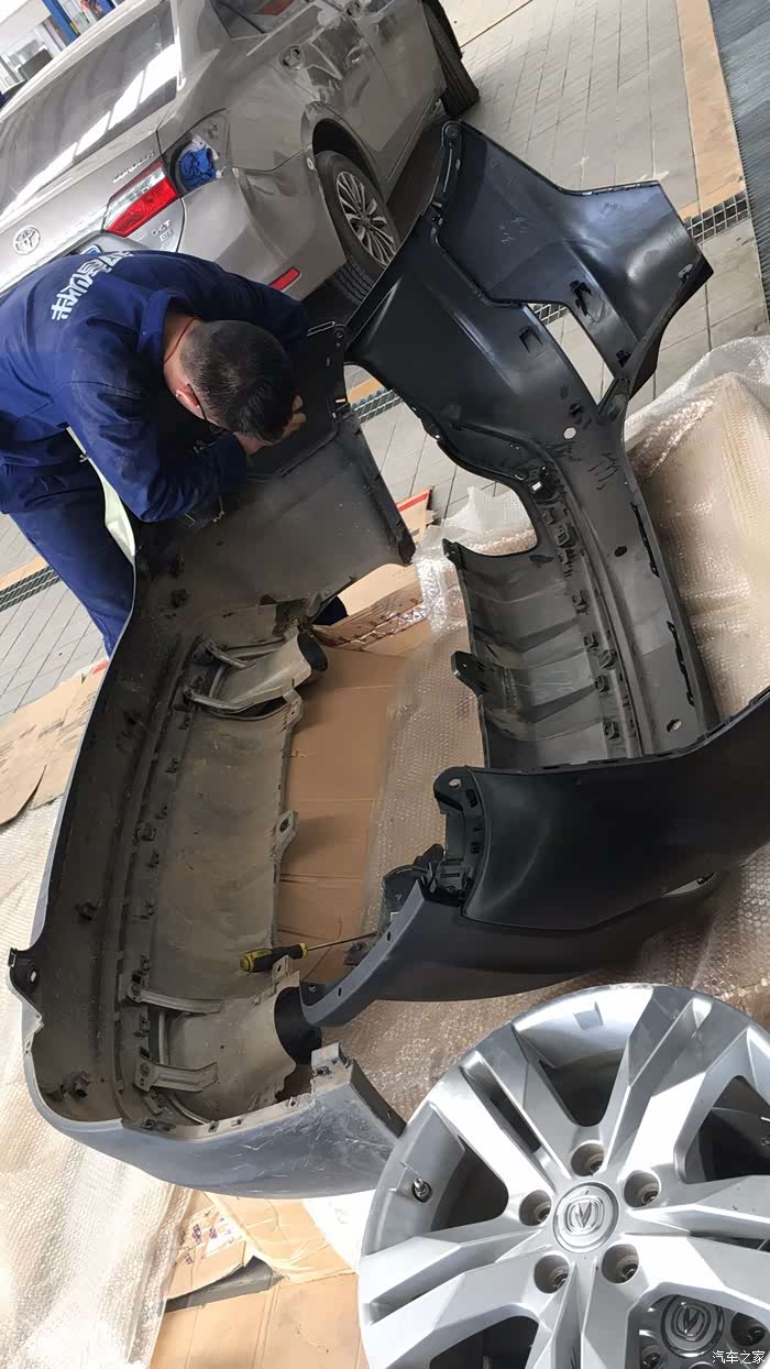 拆下来的后包围和需要更换的放一起了