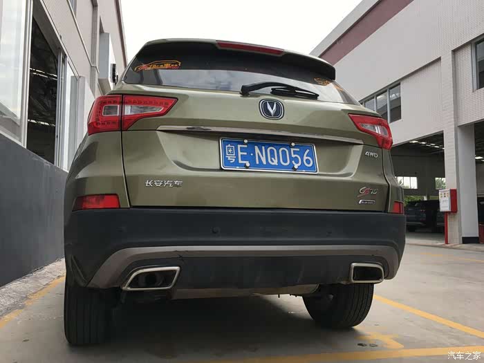 早上8:50达到4S店门口,4S店都没上班,趁着间隙拍多几张照片吧。这个屁股看起起来就是性感。后面贴了2个车友会标,因为我两台都是长安的车,哈哈