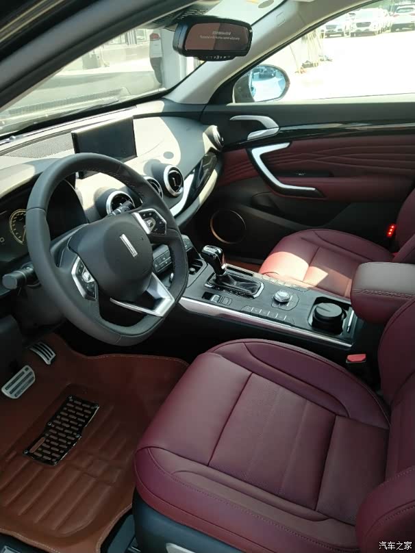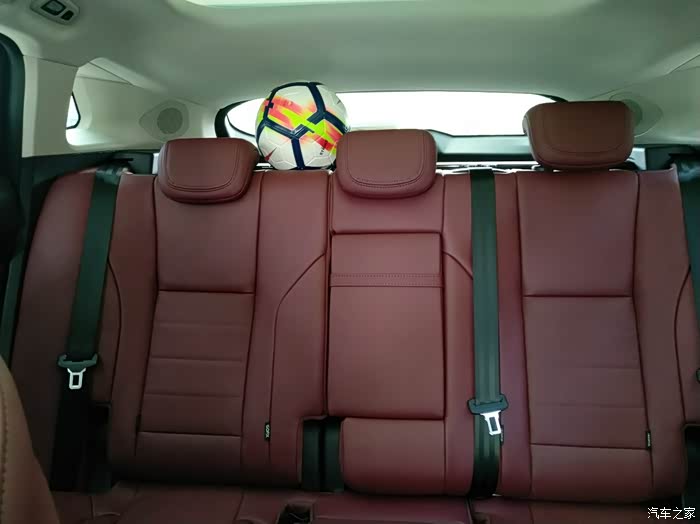 后排,足球是好说歹说让店里送的。车子揭掉膜后这是内饰照,选的酒红色内饰。因为已经全身黑了,再要黑色棕色内饰的话就太暗黑了,酒红色内饰也是旗舰版才可以选的。这个颜色内饰看着确实有感觉,黑配红车子更加有运动气息了。