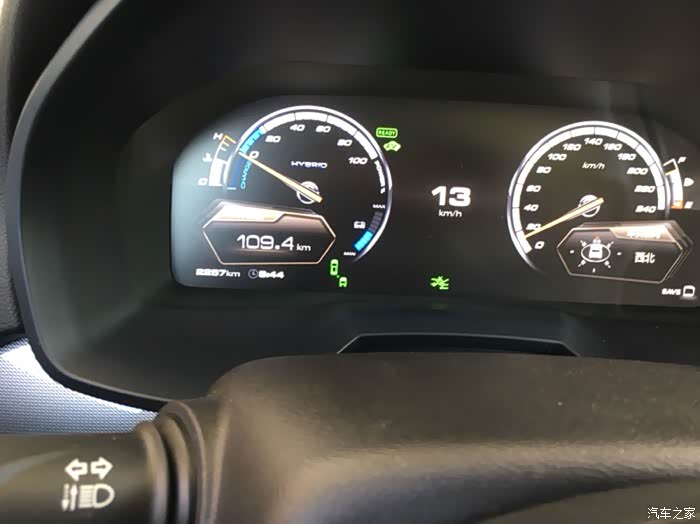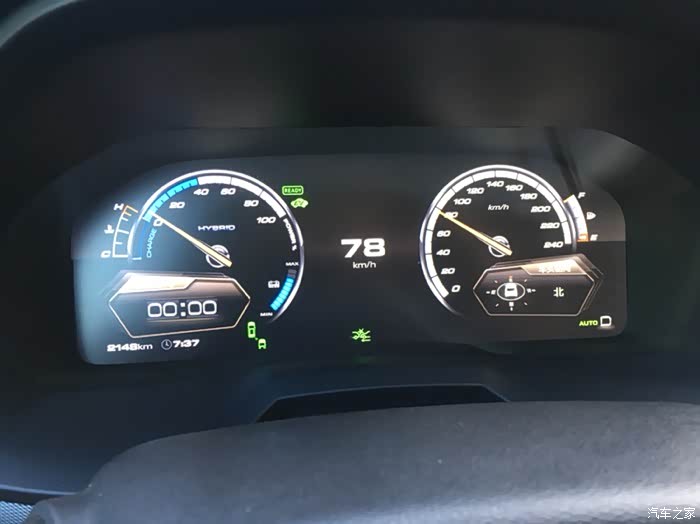 说到这里,这几十公里的县道我是用AUTO模式开的,经过我这么长时间的熟悉,我发现,自动模式确实是最综合的模式。动力响应,发动机介入都调的非常聪明,它会判断出我的意图从而作出该有的反应,用EV模式的话就会明显感觉车子开起来不如AUTO下显得那么轻快。肯定就是因为EV目的就是节能,在此模式下电机就是以一个相对节能的状态行驶,不会给驾驶员特别直接扭矩爆发,适合在城区形式,也确实节能,用不着发动机。这种混动车就是越堵车越是节能,开他出远门虽然也会相比其他燃油车省那么一点,但是也不能当电动车开。因为毕竟续航能力有限。2.28吨的中型车高速油耗和第一级别的紧凑车型差不多。很满意啦!