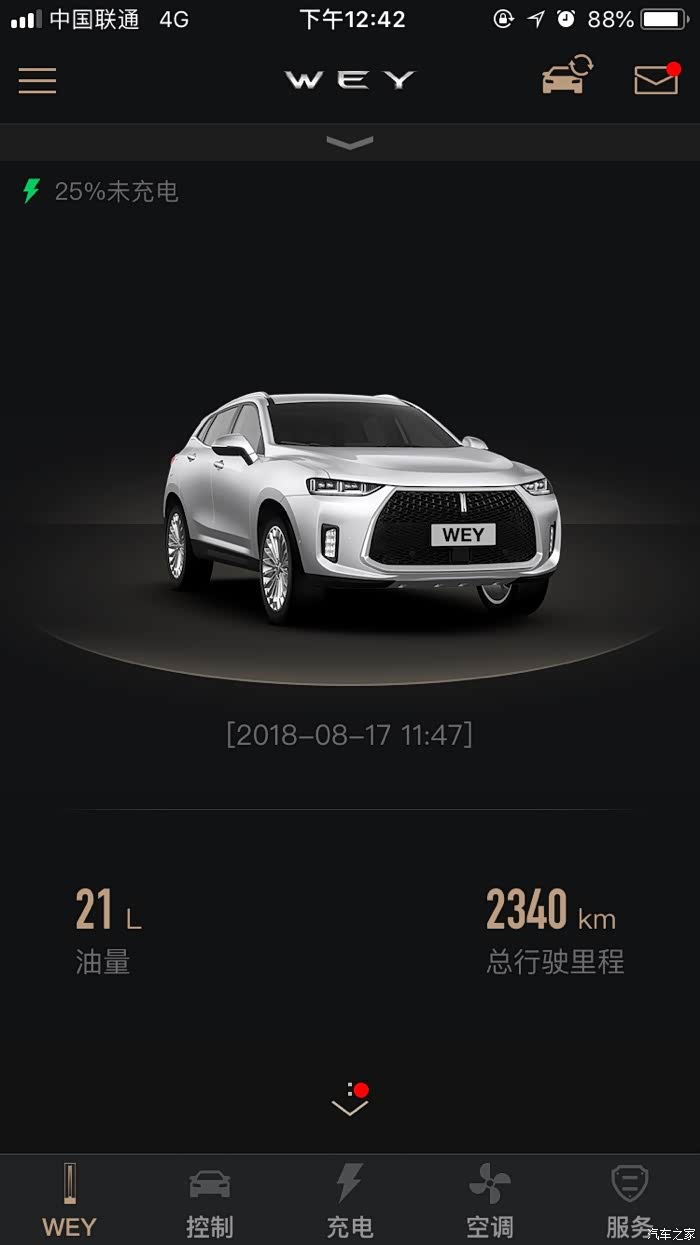 截止到这次截屏,一共跑了201公里,用了15升油,电量还剩25%。平均油耗不到7.5!