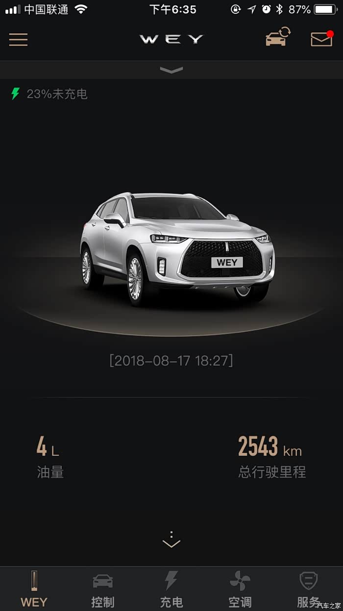 最后油箱油量还剩下4升,电量还剩下23%!总里程:2543