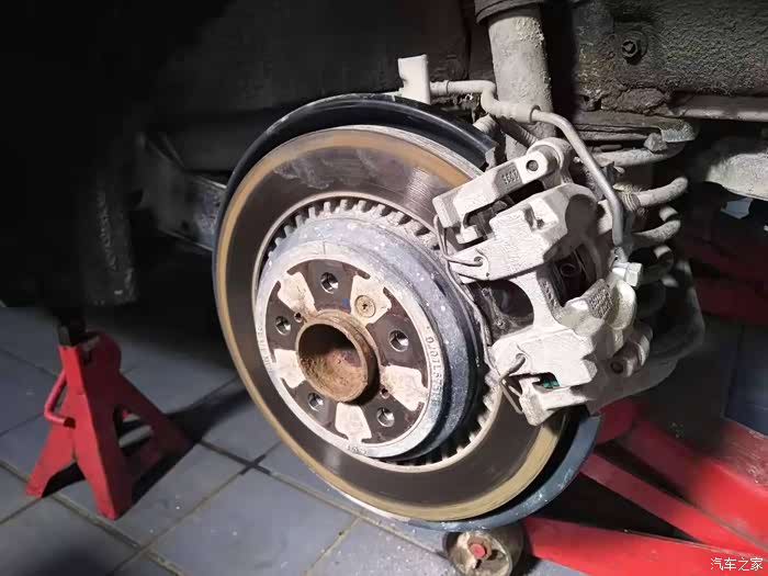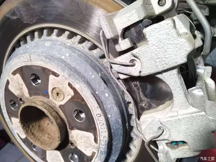 刹车盘构造完全暴露了出来,就是有些生锈了