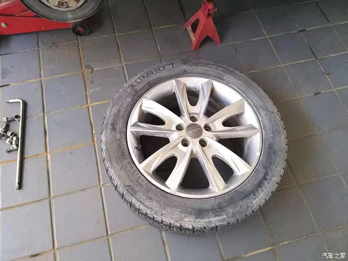 修车师傅太有才了,直接用千斤顶,他说工位满了,就直接上千斤顶了