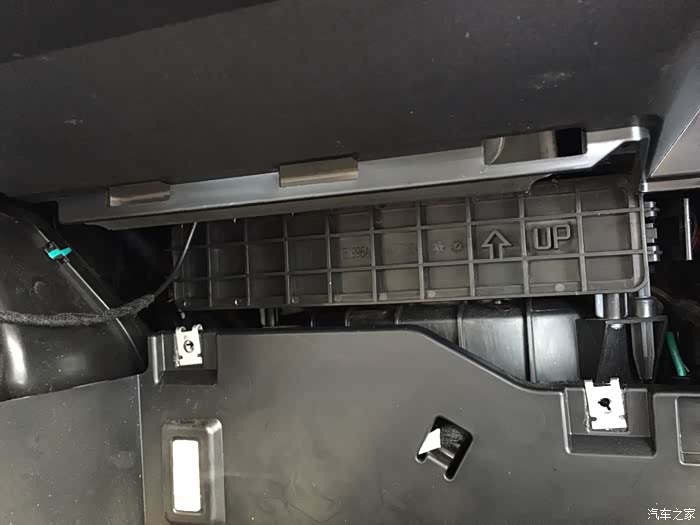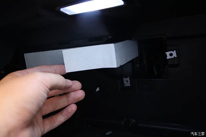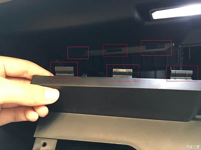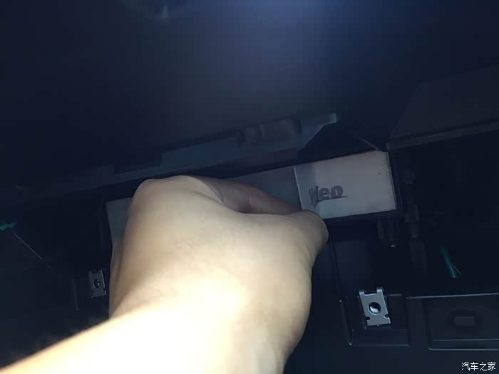 手套箱两边都有卡子,从手套箱外向内稍微使点劲按就能拿出来