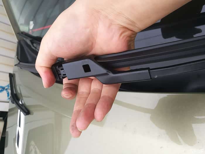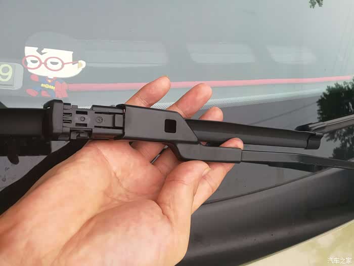 安装也很简单,轻轻将雨刮器平移塞进安装头,然后卡紧就可以了~