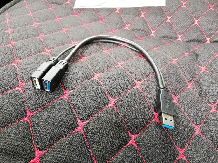 这根是一分二数据线,新买的,主要是考虑一头放U盘里的歌曲,一头用来充电,买完发现多余的