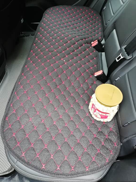 后排的垫子因为安全带卡扣所以不服帖,这里要说为啥双卡扣不能像单卡扣一样调整角度大,感觉有限位抬不来,所以坐垫铺不开有点不服帖,改天去4S看看能不能调整。